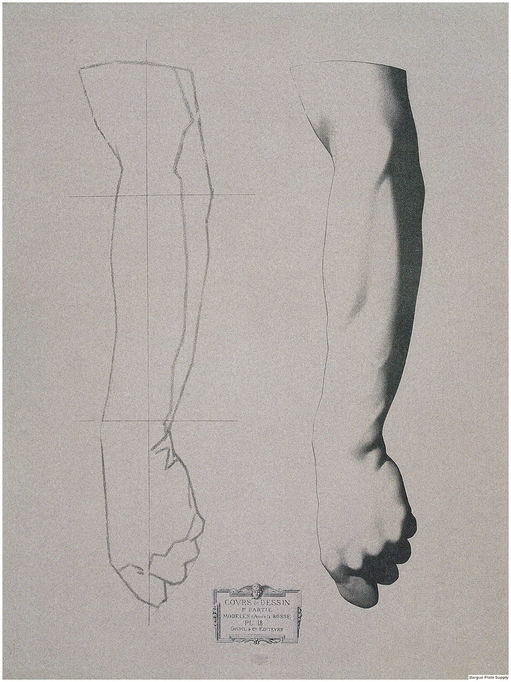 Bargue Plate 1, 18. Arm of a Man, Vertical Position (Bras d'homme, Vertical)