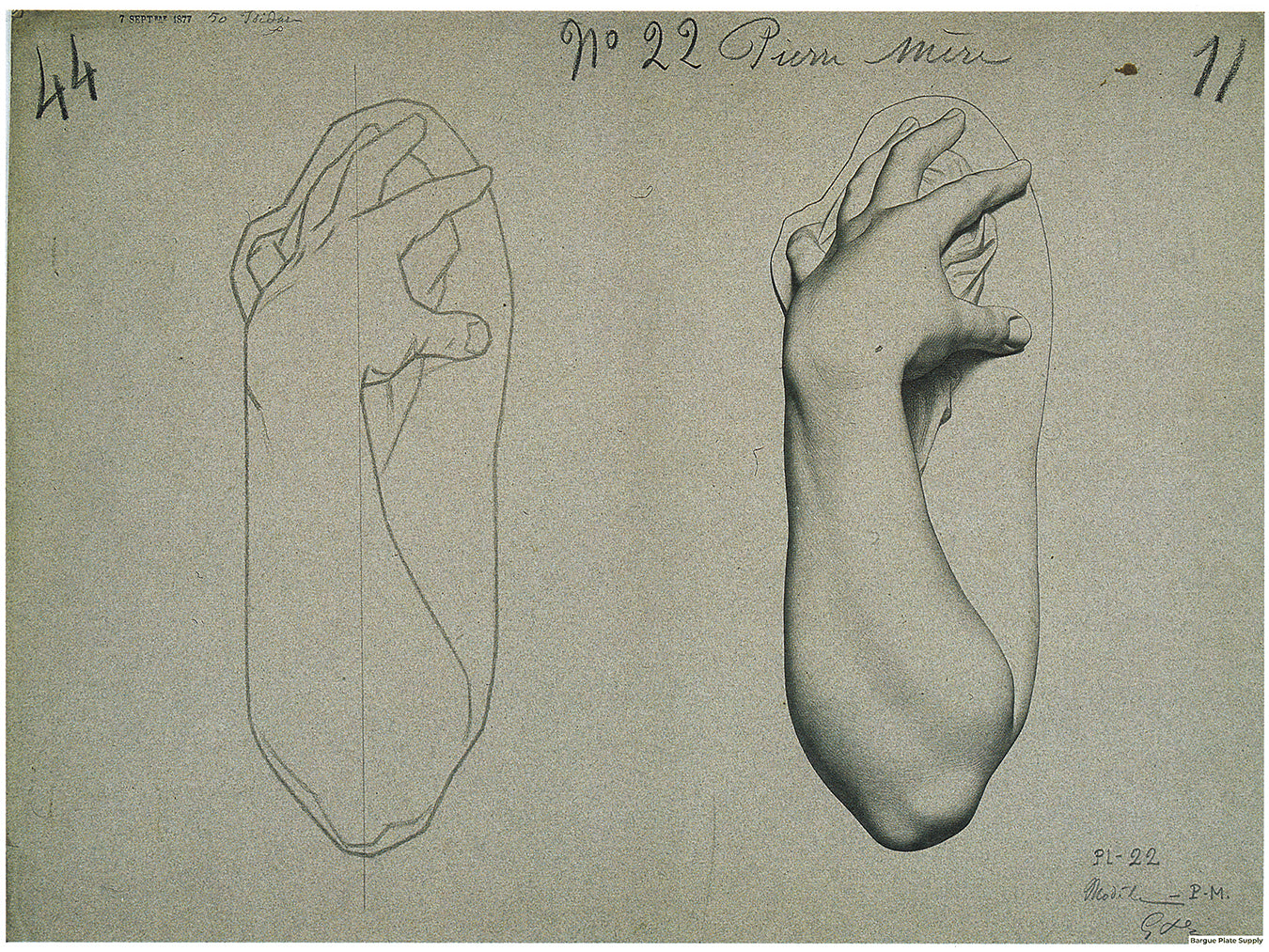 Bargue Plate 1, 22. Woman's Arm, Bent While Pressing a Piece of Drapery to Her Shoulder (Bras de femme, Ployé)