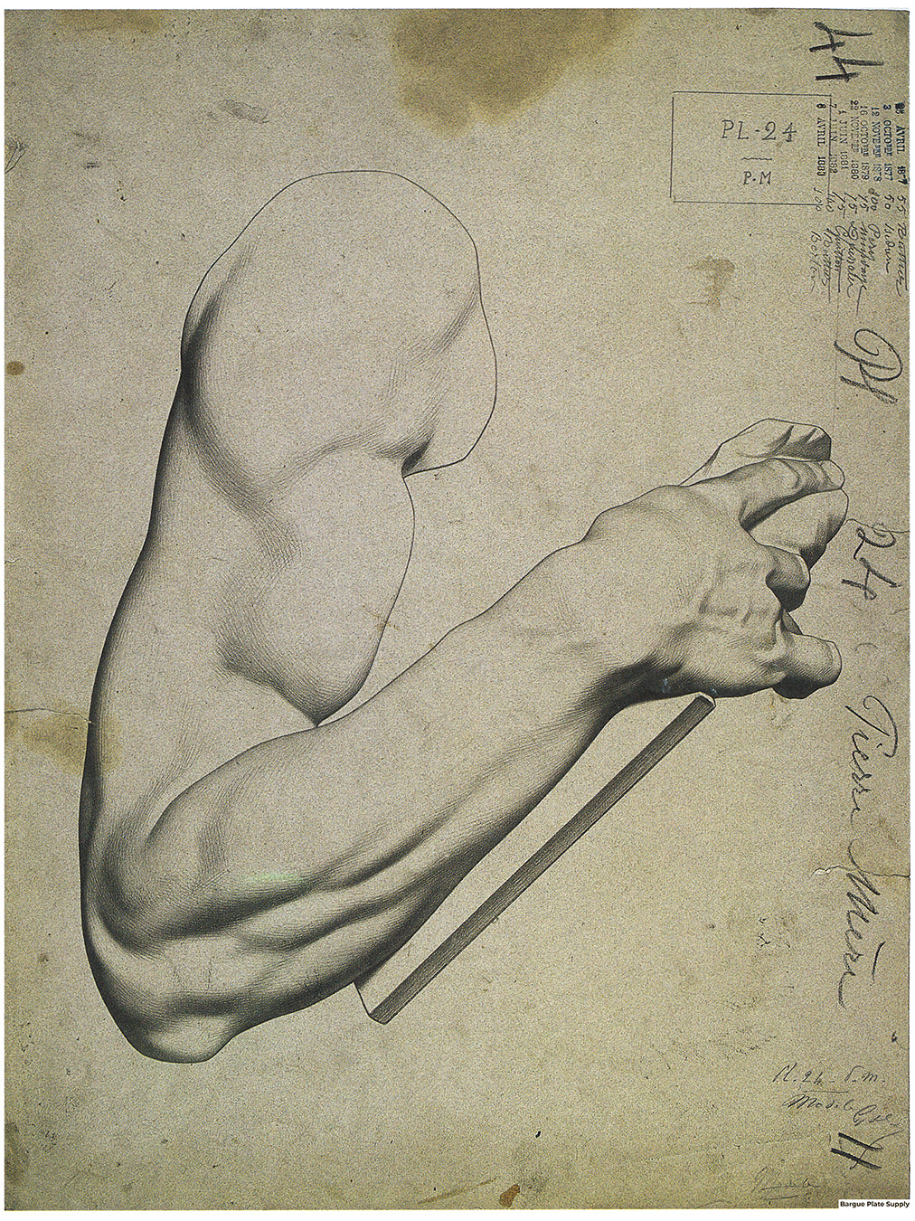 Bargue Plate 1, 24. Arm of Moses, by Michelangelo (Bras du Moïse de Michel-Ange)