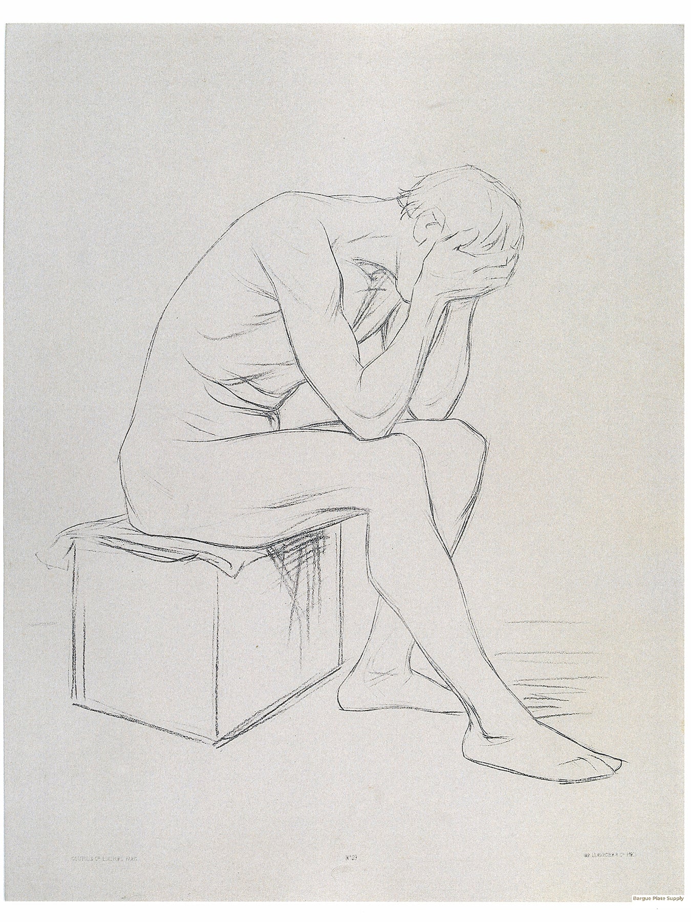 Bargue Plate 3,39. Seated man, hiding his face in his hands. (Homme assis, se cachant le visage dans les mains.)